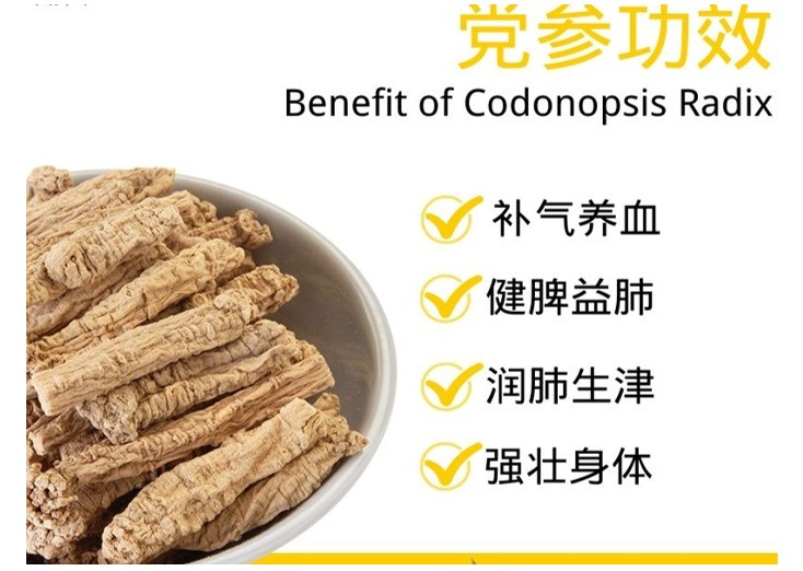 Codonopsis root, also known as Dang Shen, is a traditional Chinese herb used to tonify qi (vital energy), strengthen the spleen and lungs, and improve overall vitality. It is also known for its potential to boost the immune system, improve blood circulation, and aid digestion. Some studies suggest it may have anti-cancer and anti-aging properties, and it's even used as a food ingredient in some Asian cultures.