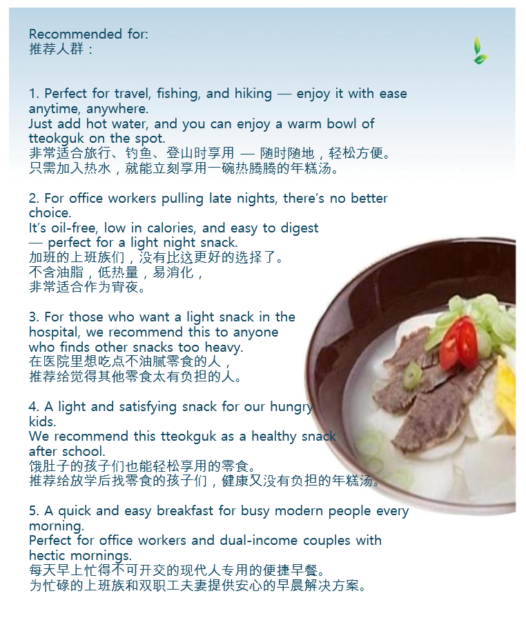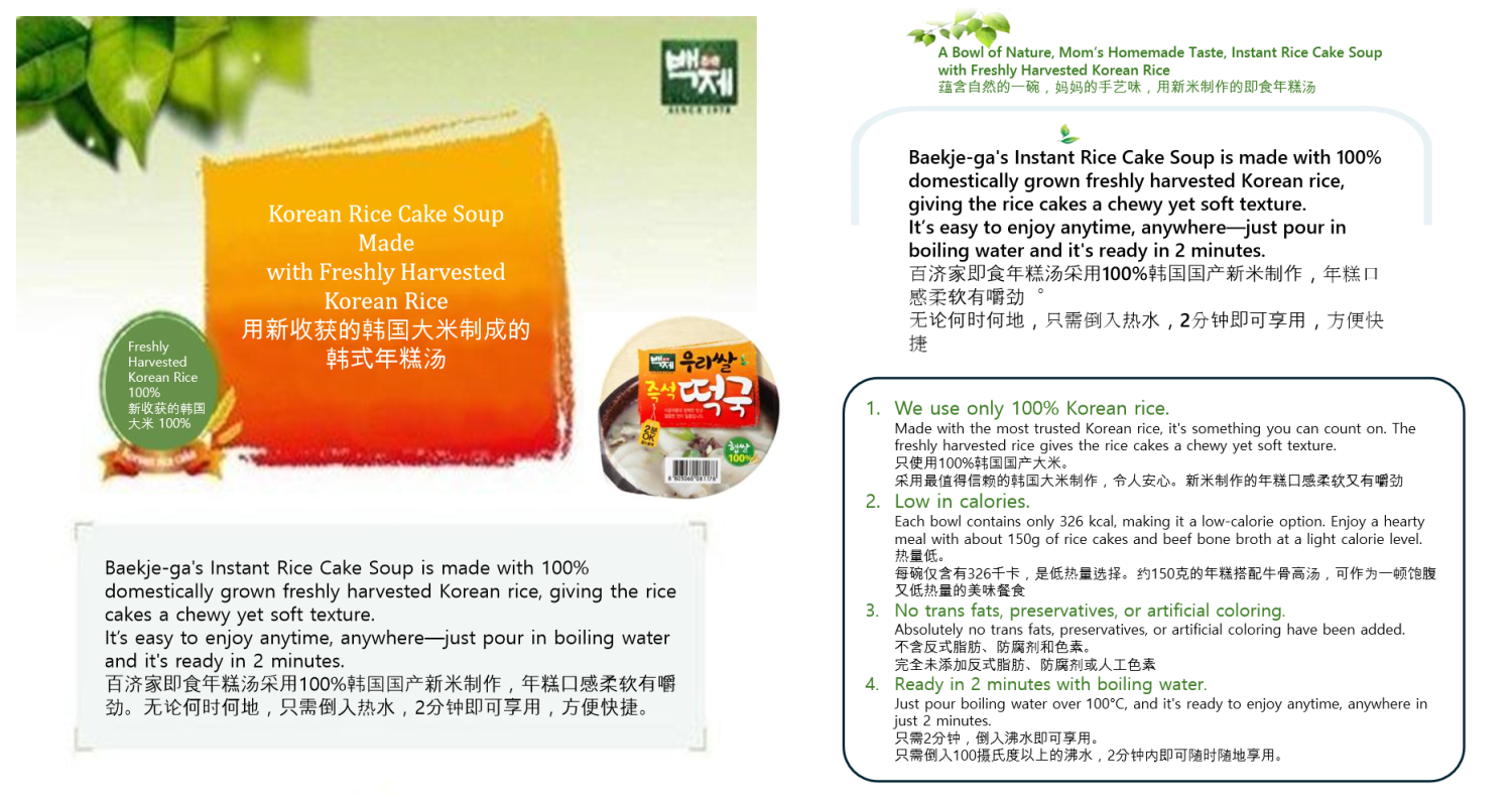 Baekje-ga's Instant Rice Cake Soup is made with 100% domestically grown freshly harvested Korean rice.