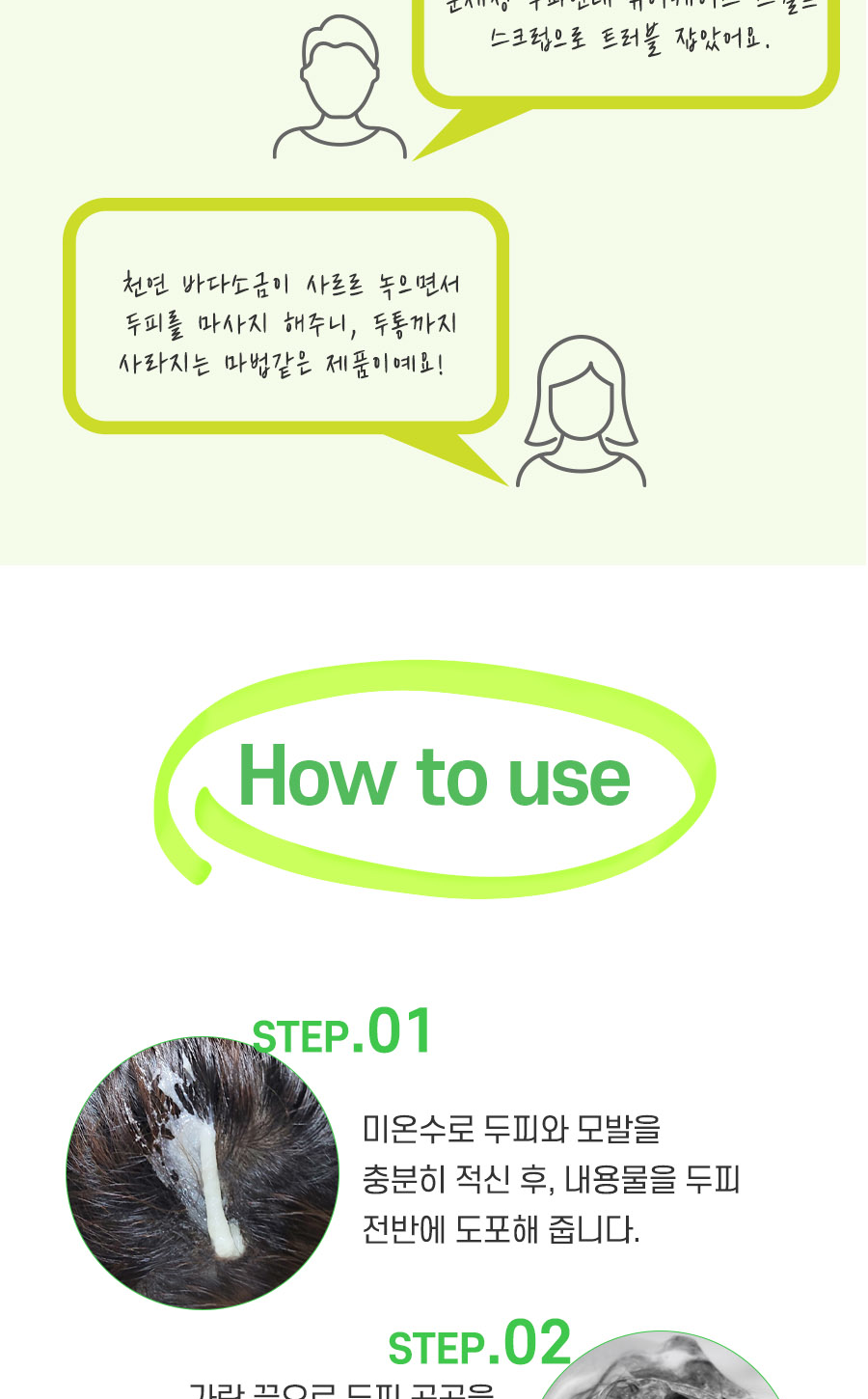 Moisten the scalp and hair thoroughly with lukewarm water and apply the contents to the entire scalp. After massaging all over the scalp with fingertips, moisten slightly more water and create a rich foam After massaging the hair, rinse with plenty of water for a certain cool cooling feeling.